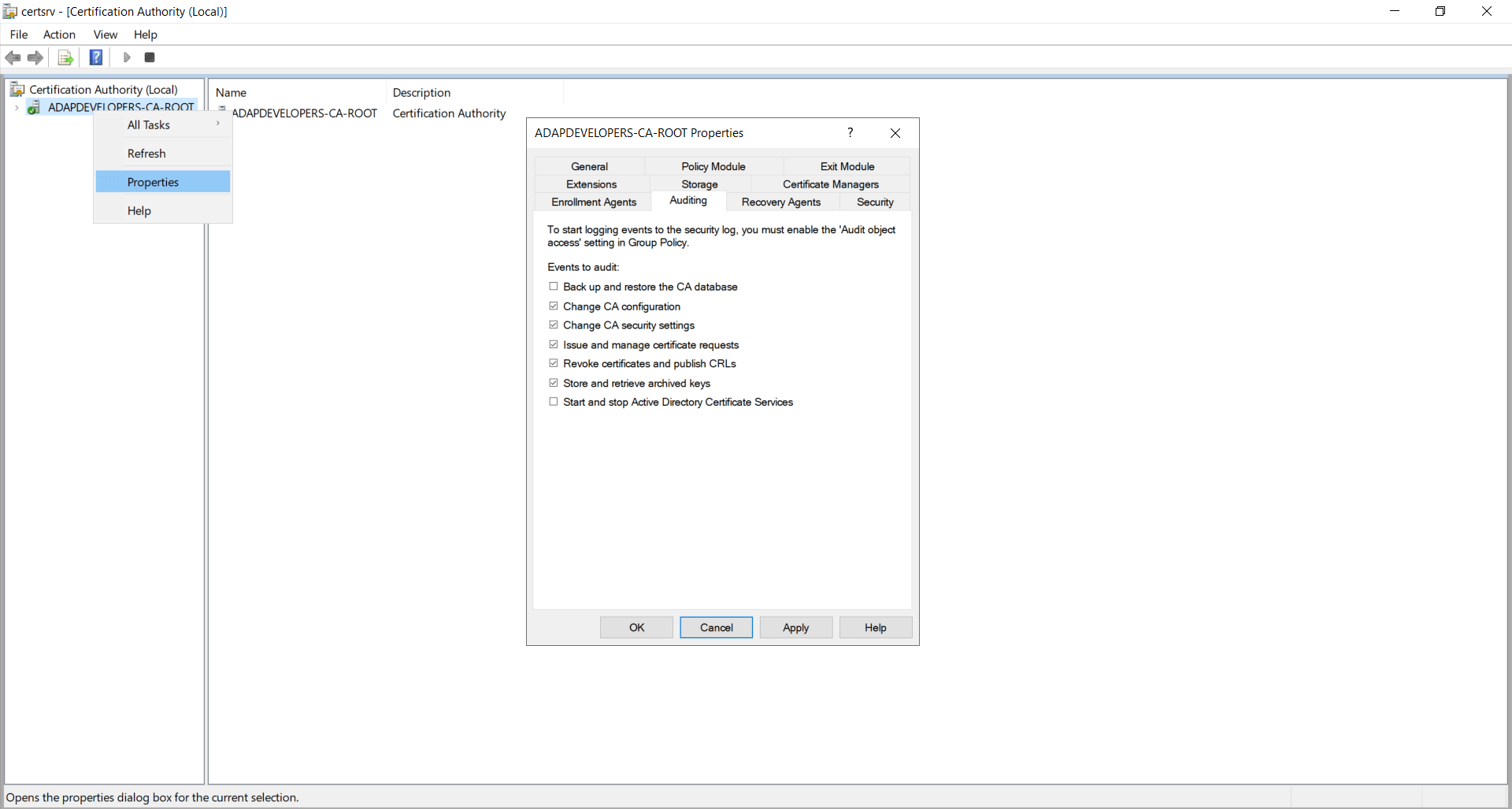 When configuring the audit policies manually, you can configure either the advanced audit policies or the legacy audit policies for AD CS auditing.