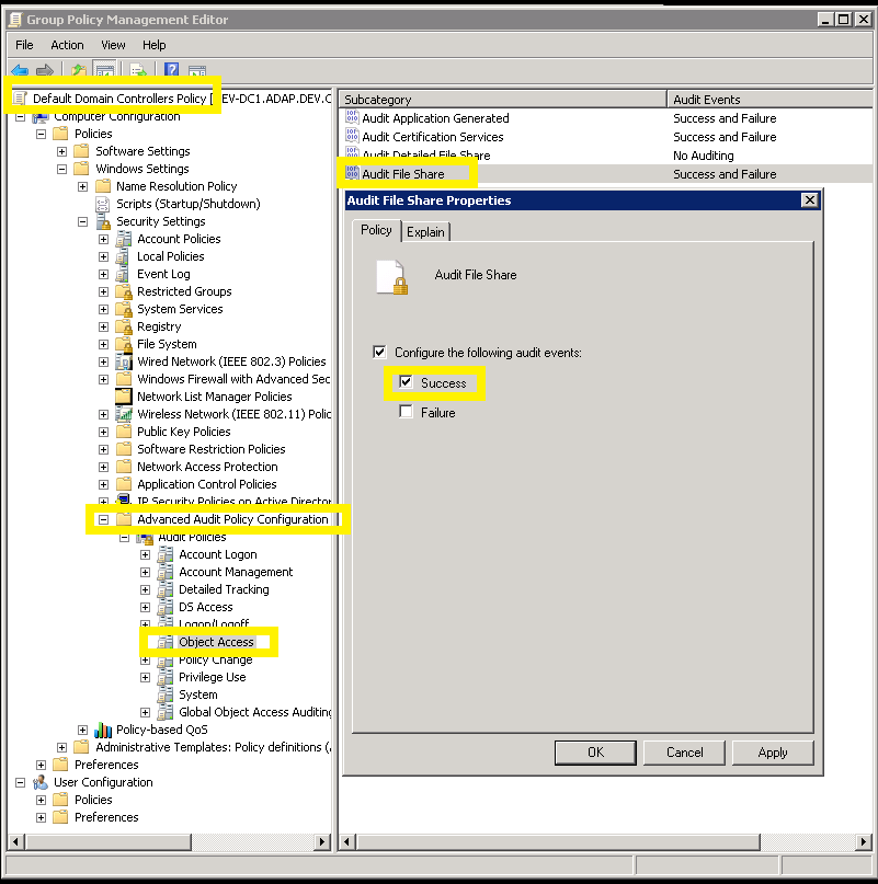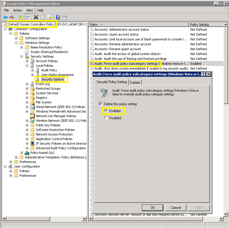 When using advanced audit policies, ensure they are forced over legacy audit policies.