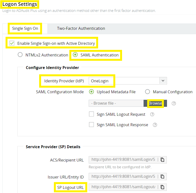 Configuring single sign-on to ADAudit Plus using OneLogin