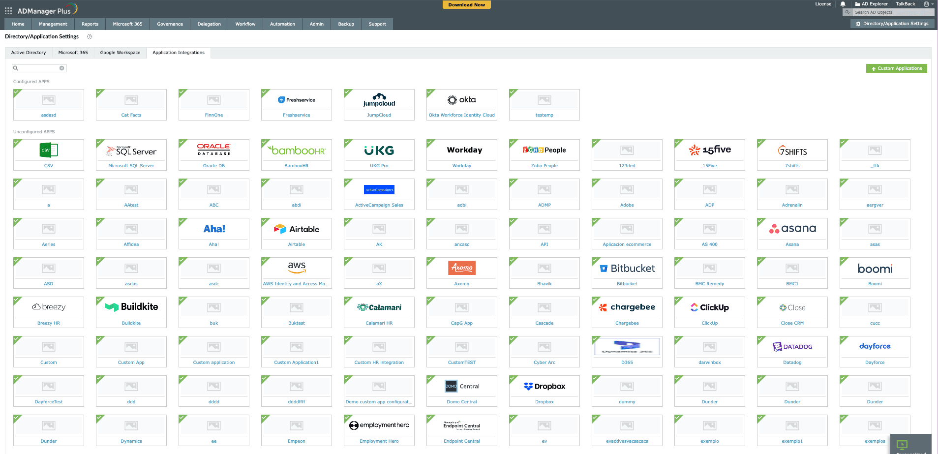- Seamless HRMS and database integration: Directly integrate ADManager Plus with popular human resource management systems (HRMS) such as Zoho People, UKG Pro, BambooHR, and Workday, as well as external databases. This allows for complete automation of user provisioning and deprovisioning based on HR data, making it effortless to automate AD account creation.