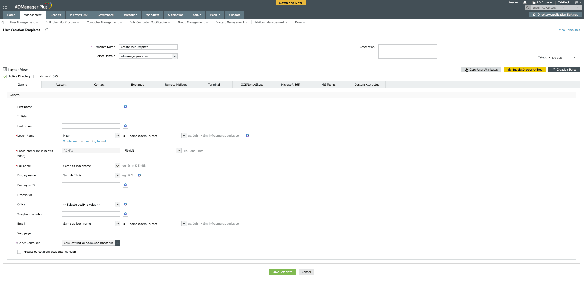 - Template-controlled provisioning: Standardize user creation with predefined templates that include all necessary attributes, ensuring consistency across your organization. This is crucial for seamless AD account creation automation.