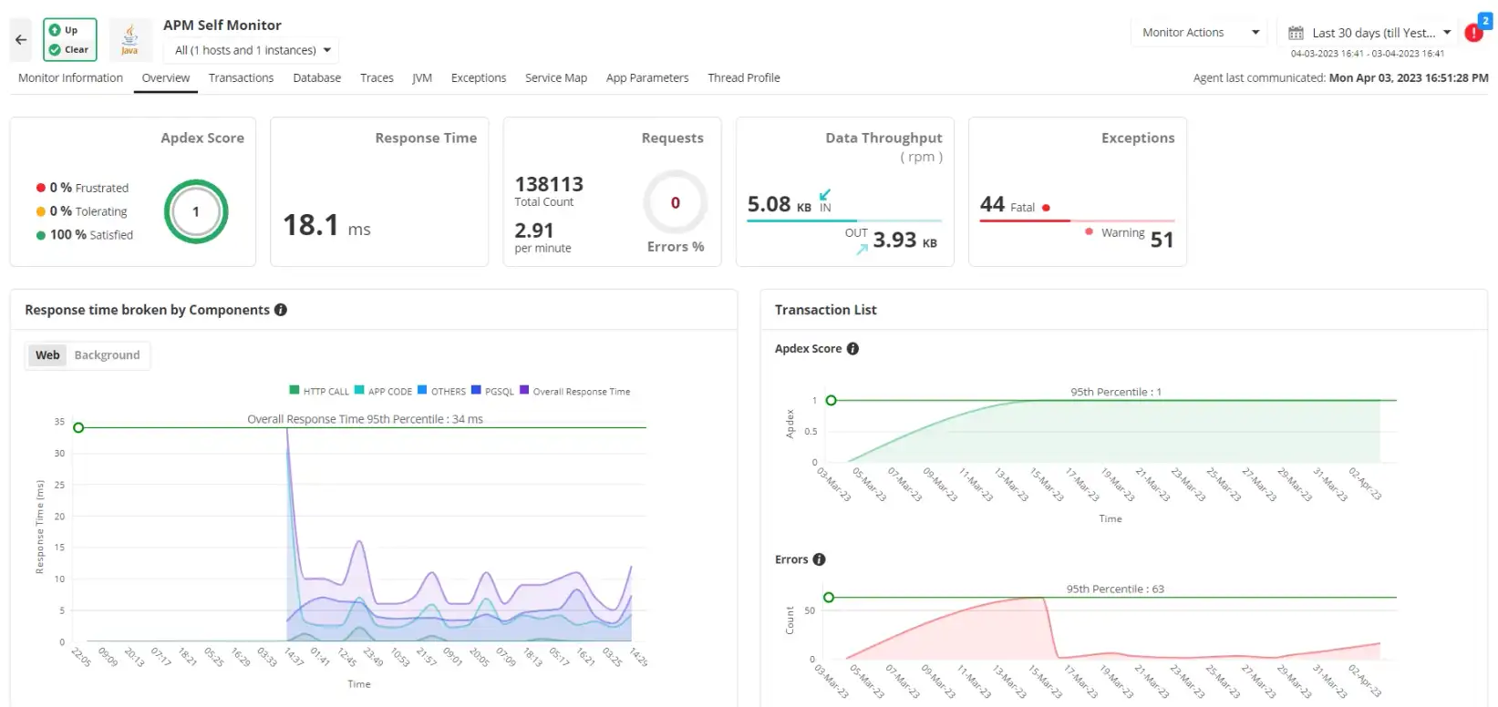 In-depth application performance tracking: It provides full visibility into your applications, from low-level code details to the overall health of the entire system. An APM tool with real-time error detection works by instrumenting your application with agents or code snippets. These agents are designed to instantly capture any application errors, such as uncaught exceptions, HTTP 500 errors, or database connection failures. When an error occurs, the agent immediately sends a detailed report to the monitoring platform, which includes: