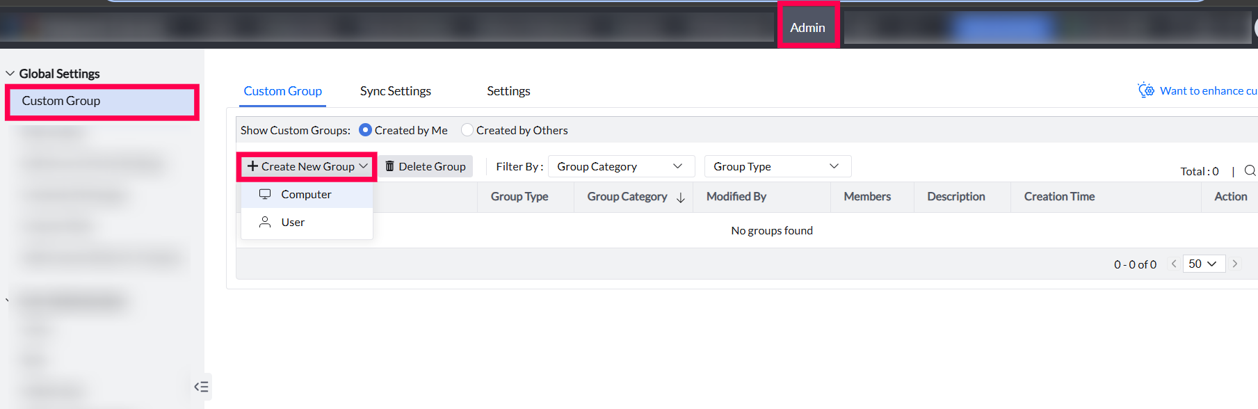 Custom Groups can be created based on computers or users and are classified into the following categories to help organize and manage devices efficiently.