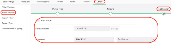 Alerts Profiles can be configured to perform customized actions on alert trigger. To achieve this, Firewall Analyzer lets you to configure a program to be executed.