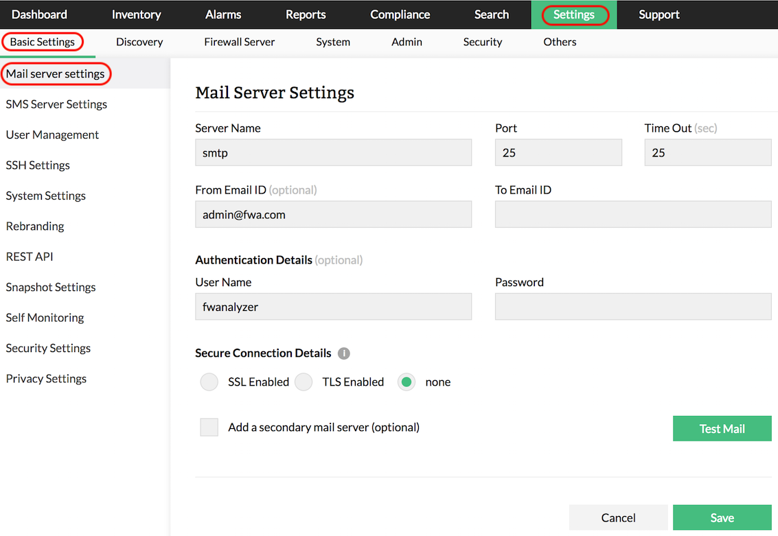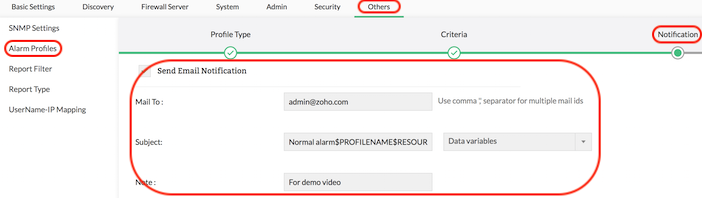 Firewall Analyzer provides a simple alert notification mechanism for the administrators. It provides Email notification of Firewall Analyzer generated alerts in the administrator's email inbox. You can set up an Email notification to immediately notify any user when an alert is triggered.
