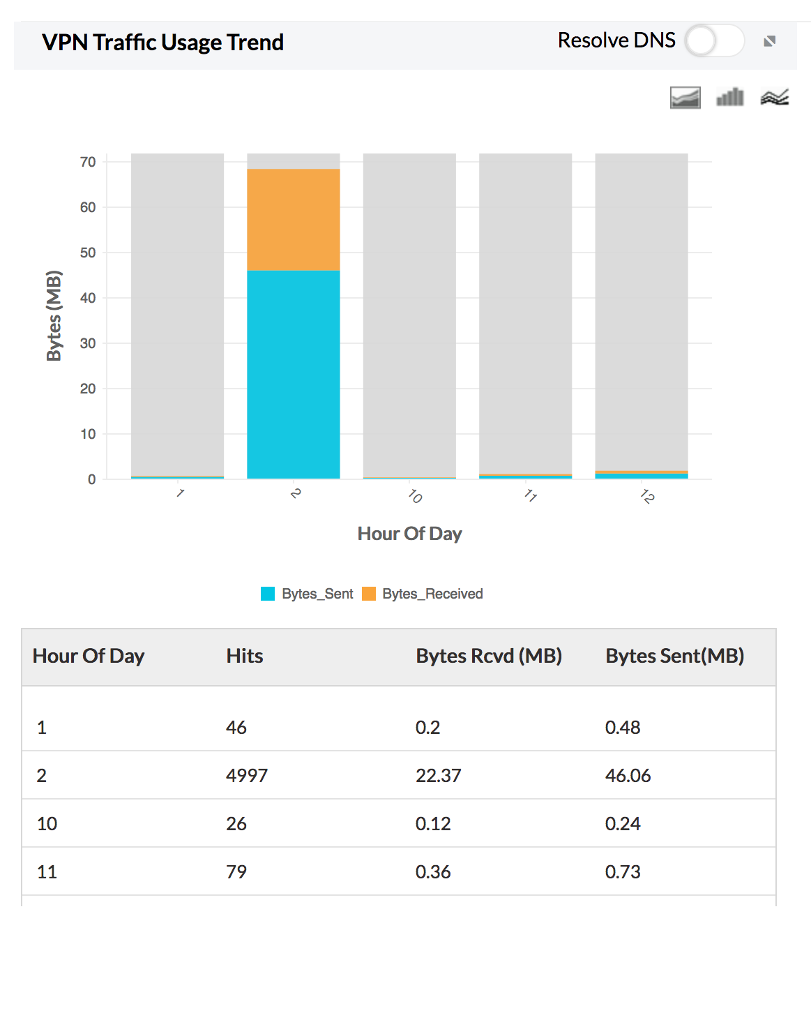 When you have multiple VPNs in your network, you will be interested in seeing the amount of traffic that is going to search VPN. VPN usage reports (Site to Site VPN Monitoring) exactly addresses this requirement.